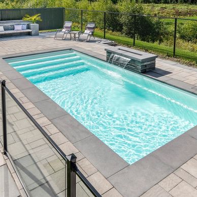 Fiberglass pools come in a variety of different colours and multiple different features.